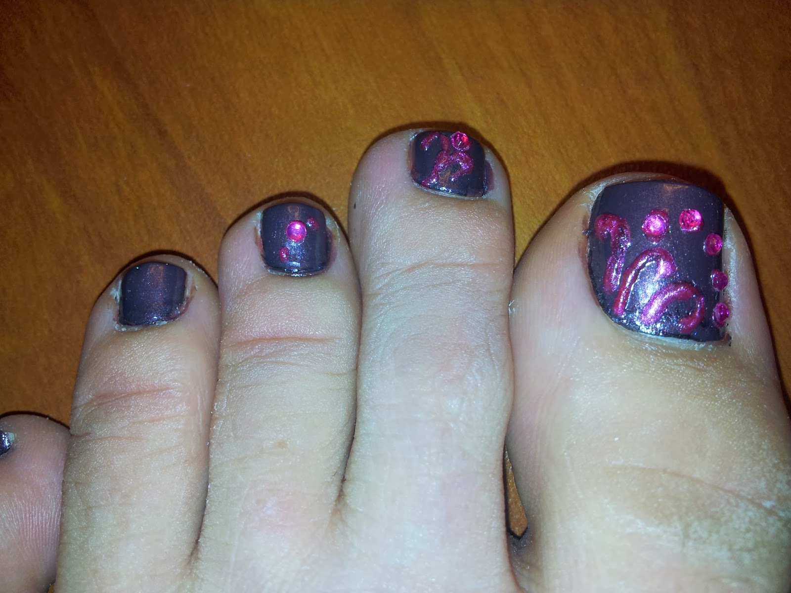 Happy Manicure Monday! Its close to Valentine's Day, and I thought a cute Zing n Bling manicure, well technically pedicure was in store for some fun. Nails with Zing has given us a cute deep purple shimmer polish base with a hand painted design with some Zing added for a bit of sparkling fun.